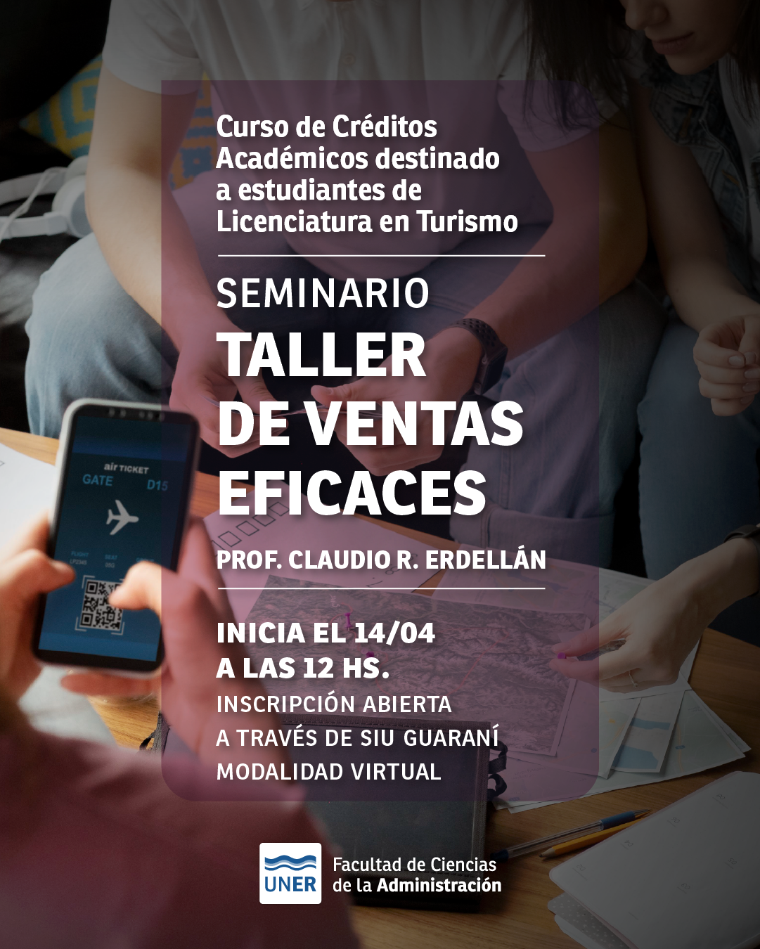 Se encuentra abierta la inscripción al Seminario Taller “Ventas Eficaces”, una propuesta académica orientada a estudiantes de la Licenciatura en Turismo, destinada a fortalecer competencias en el ámbito comercial a partir de un enfoque integral y actualizado.