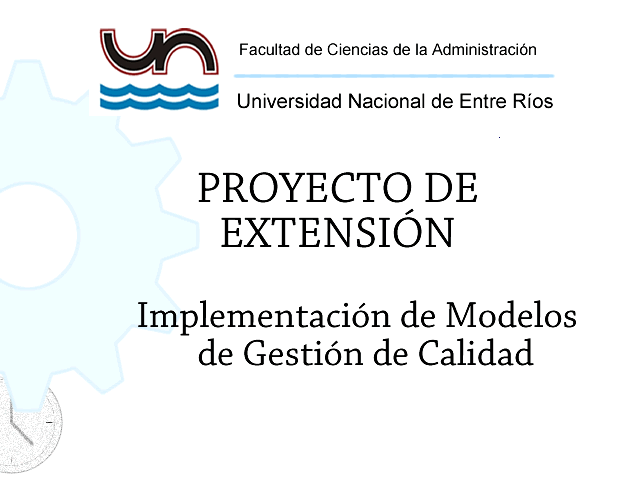 El proyecto “Implementación de Modelos de Gestión de Calidad” tiene como fin desarrollar, a través de un programa de extensión, actividades de capacitación y servicios de asesoramiento a las organizaciones públicas y privadas del área de influencia de la Facultad de Ciencias de la Administración en la aplicación de normas de gestión de calidad, con prioridad en que el desarrollo de la actividad posibilite un aporte directo a la adquisición de capacidades de gestión en las organizaciones y por extensión en el resto de los actores económicos y sociales.