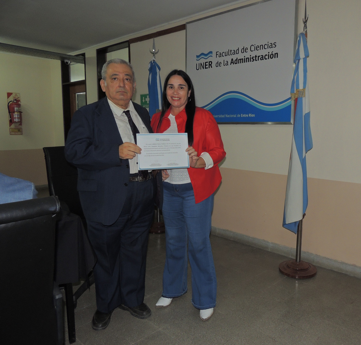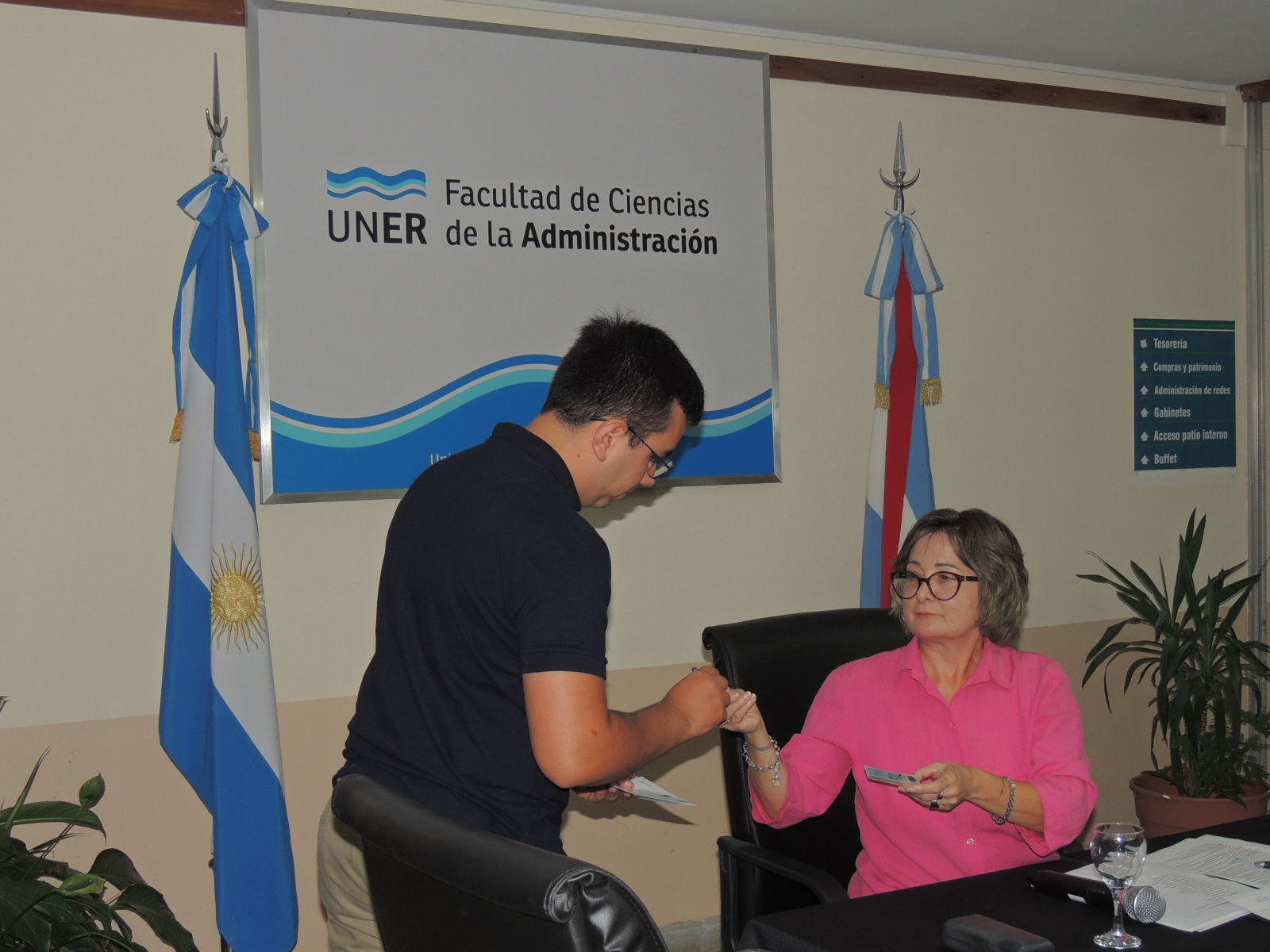 Previo al inicio de la sesión, se realizó la entrega de certificados a los Consejeros Directivos electos de los distintos claustros, en reconocimiento a su compromiso con la vida institucional.