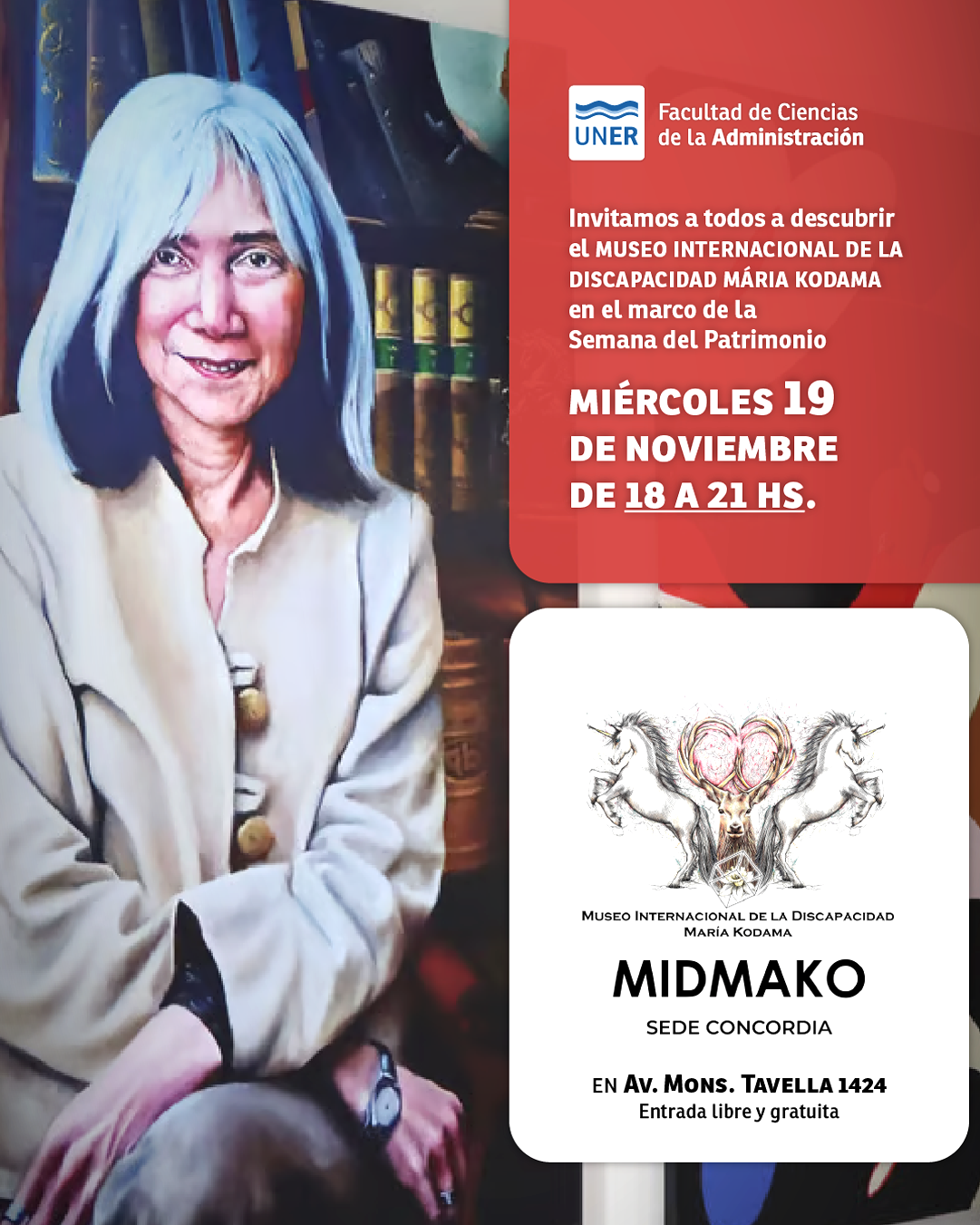 En el marco de la Semana de los Museos y el Patrimonio, invitamos a toda la comunidad a participar de una jornada abierta para conocer y recorrer el Museo Internacional de la Discapacidad María Kodama (MIDMAKO), cuya sede funciona en nuestra Facultad.