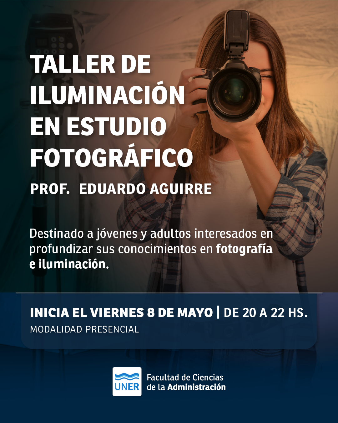 La Facultad de Ciencias de la Administración, a través de la Secretaría de Extensión Universitaria, presenta el Taller de Iluminación en Estudio Fotográfico, una propuesta orientada a brindar herramientas teórico-prácticas para el manejo de la iluminación en estudio.