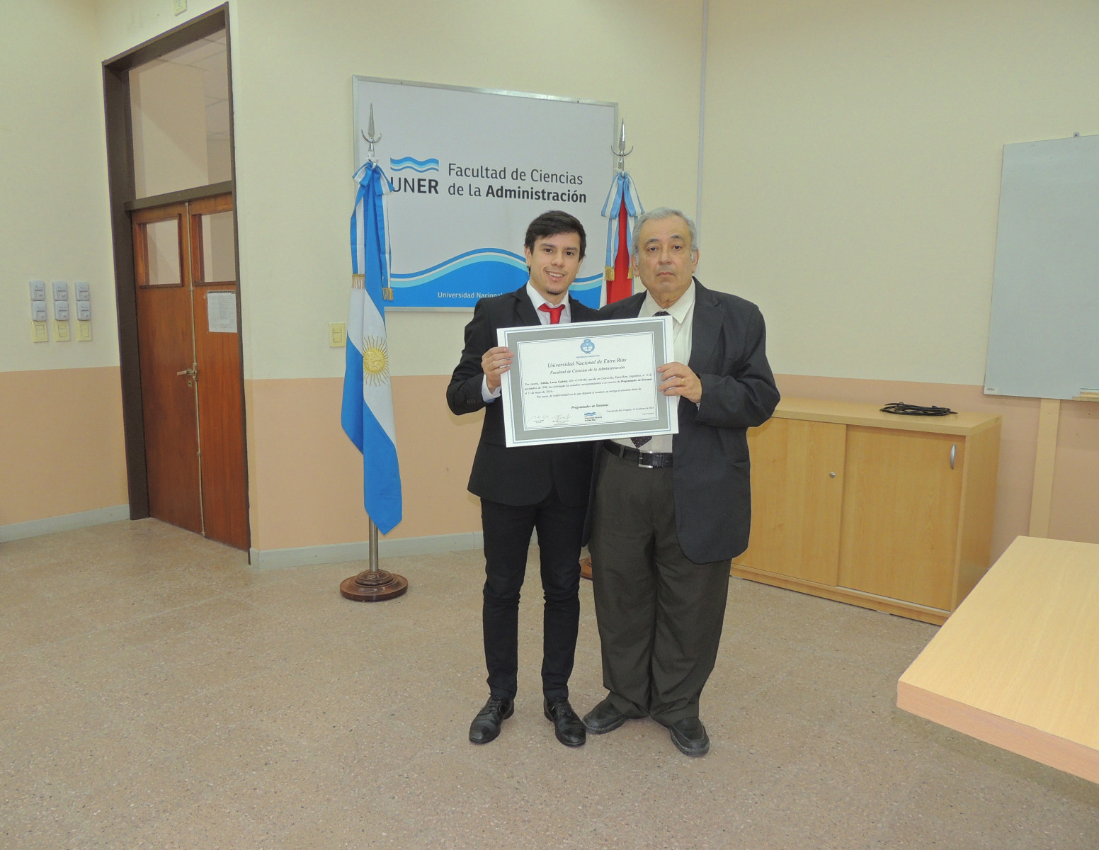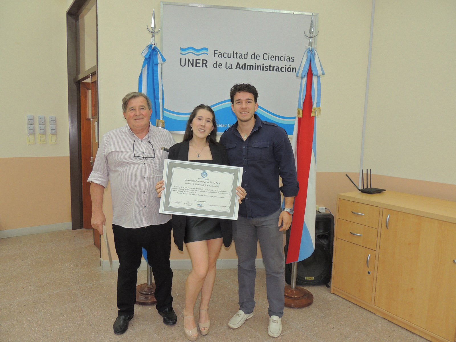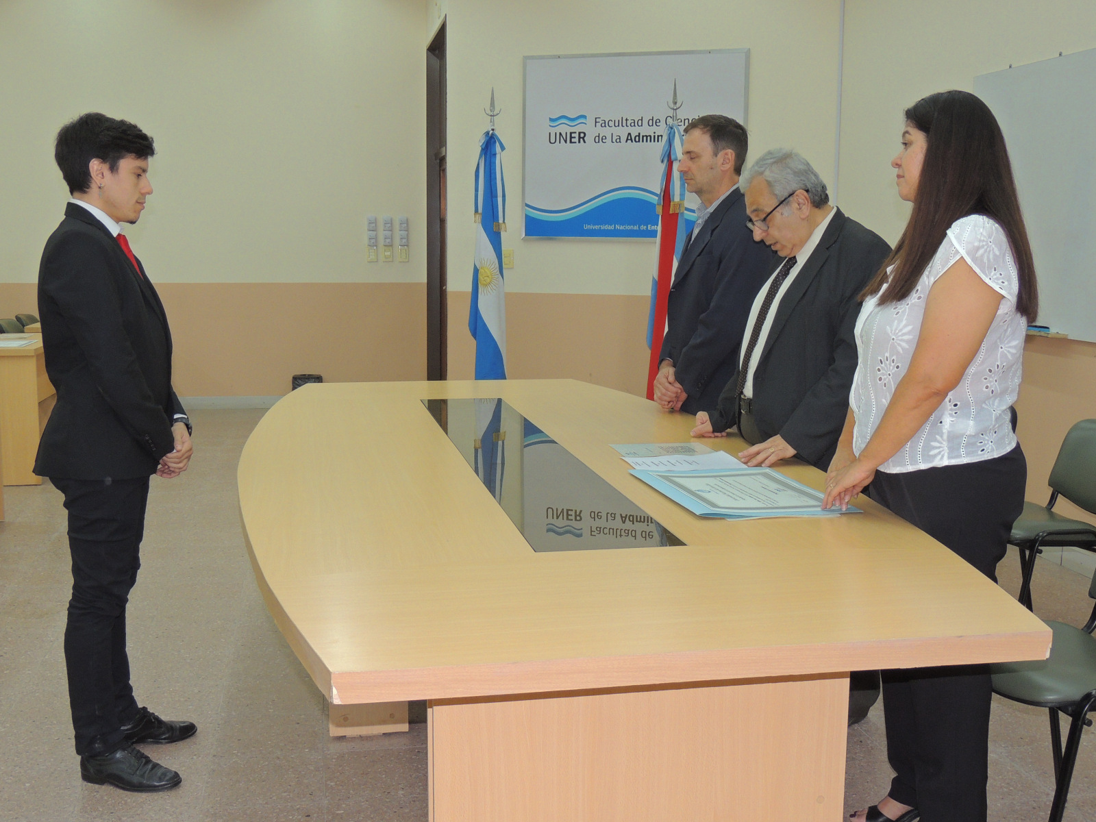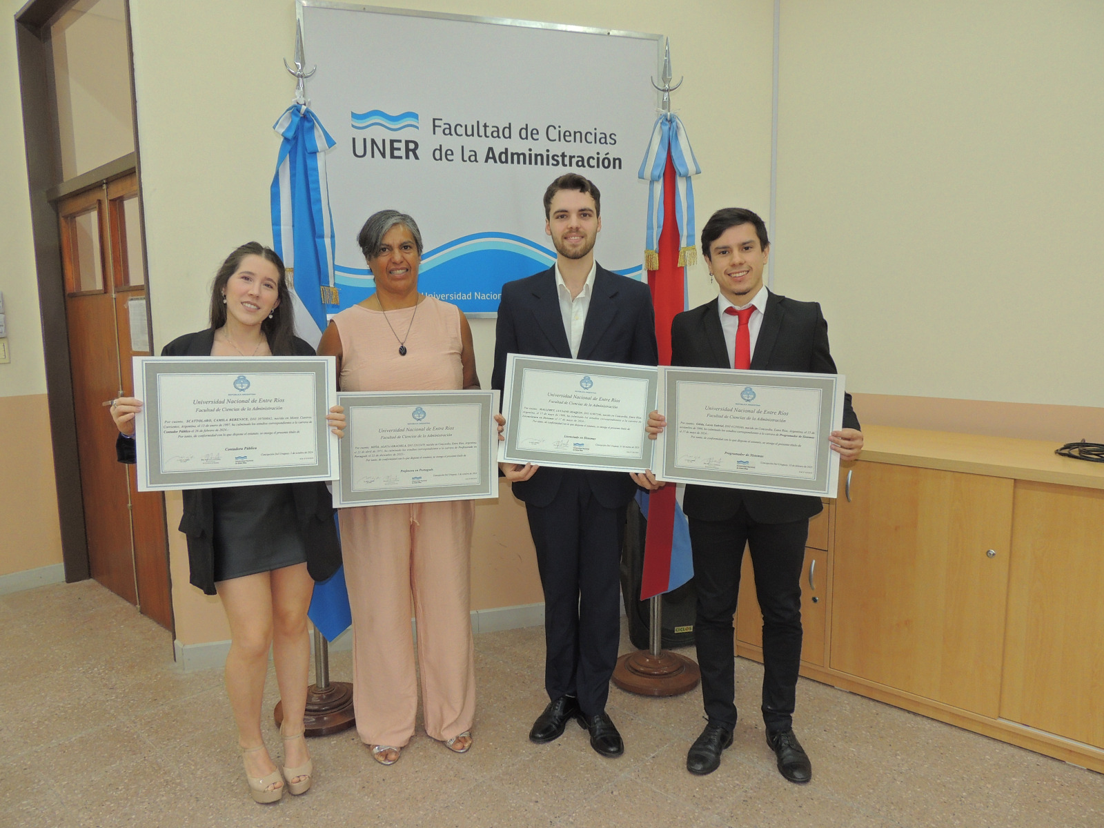 Se realizó la entrega de diplomas a graduados de las carreras de la Facultad de Ciencias de la Administración. Presidió el acto el decano, Cr. Raúl A. Mangia, quien entregó los títulos a los flamantes profesionales. Lo acompañaron en la ceremonia, el Secretario Académico, Lic. Gustavo Leonardi, y la Tec. María Teresa Benítez a cargo de la Dirección Académica.