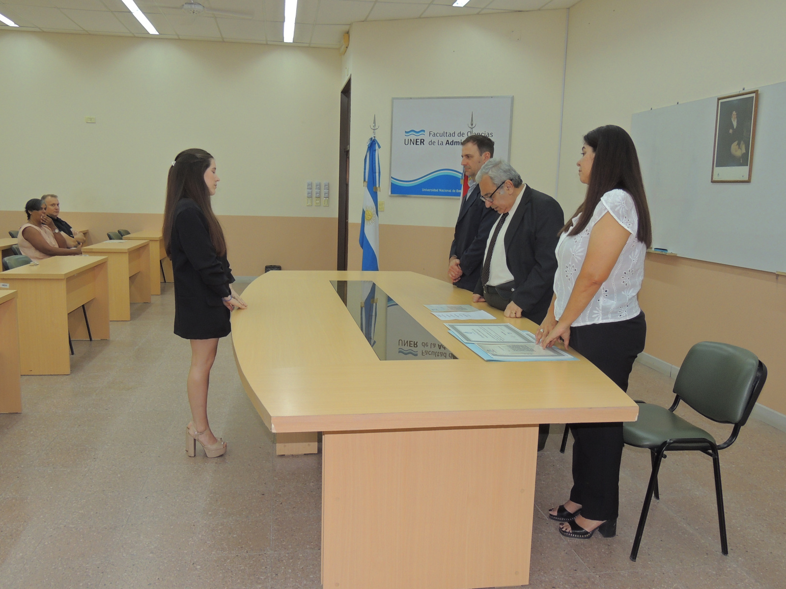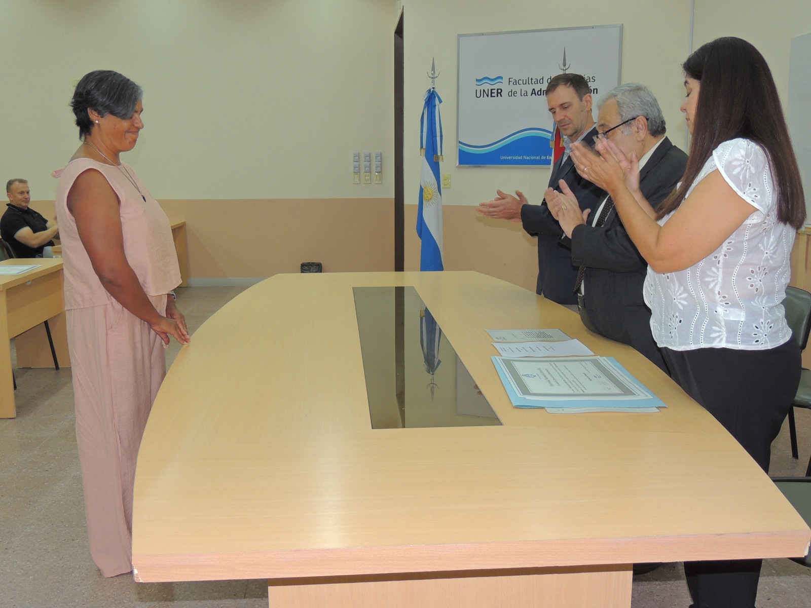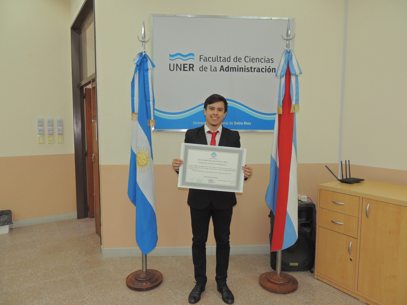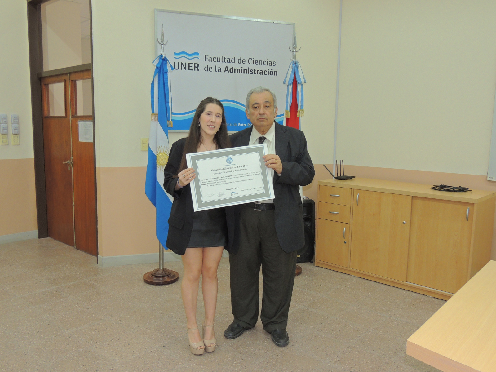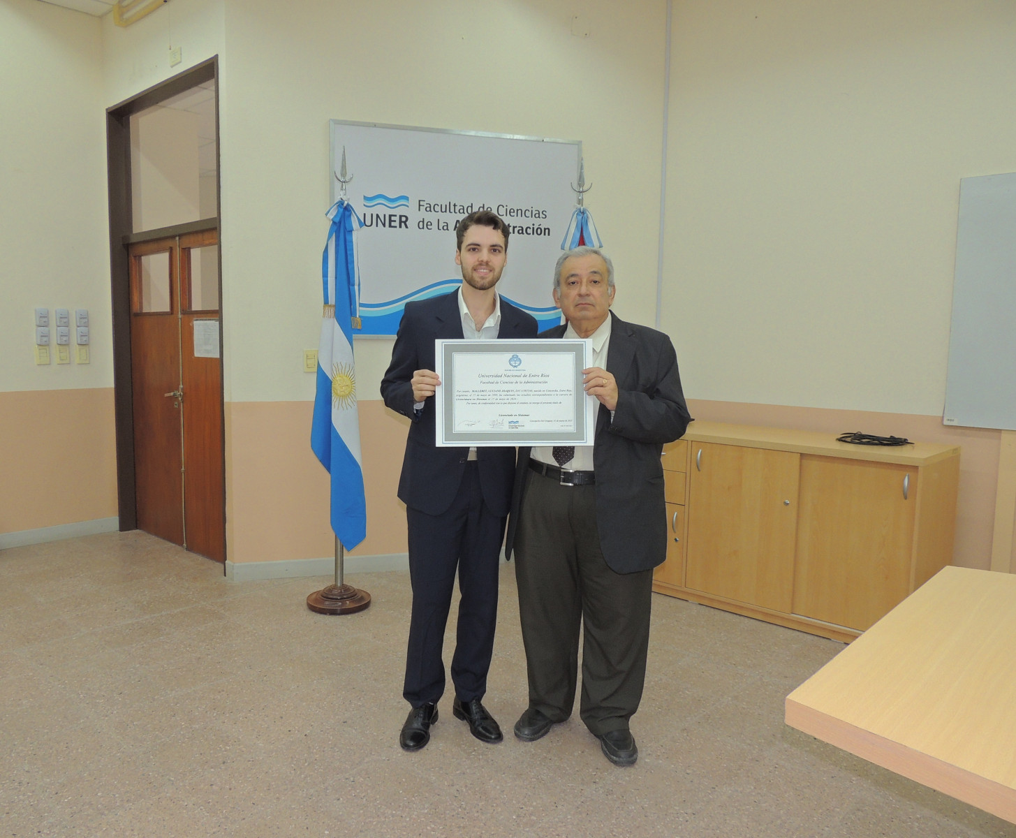 Se realizó la entrega de diplomas a graduados de las carreras de la Facultad de Ciencias de la Administración. Presidió el acto el decano, Cr. Raúl A. Mangia, quien entregó los títulos a los flamantes profesionales. Lo acompañaron en la ceremonia, el Secretario Académico, Lic. Gustavo Leonardi, y la Tec. María Teresa Benítez a cargo de la Dirección Académica.