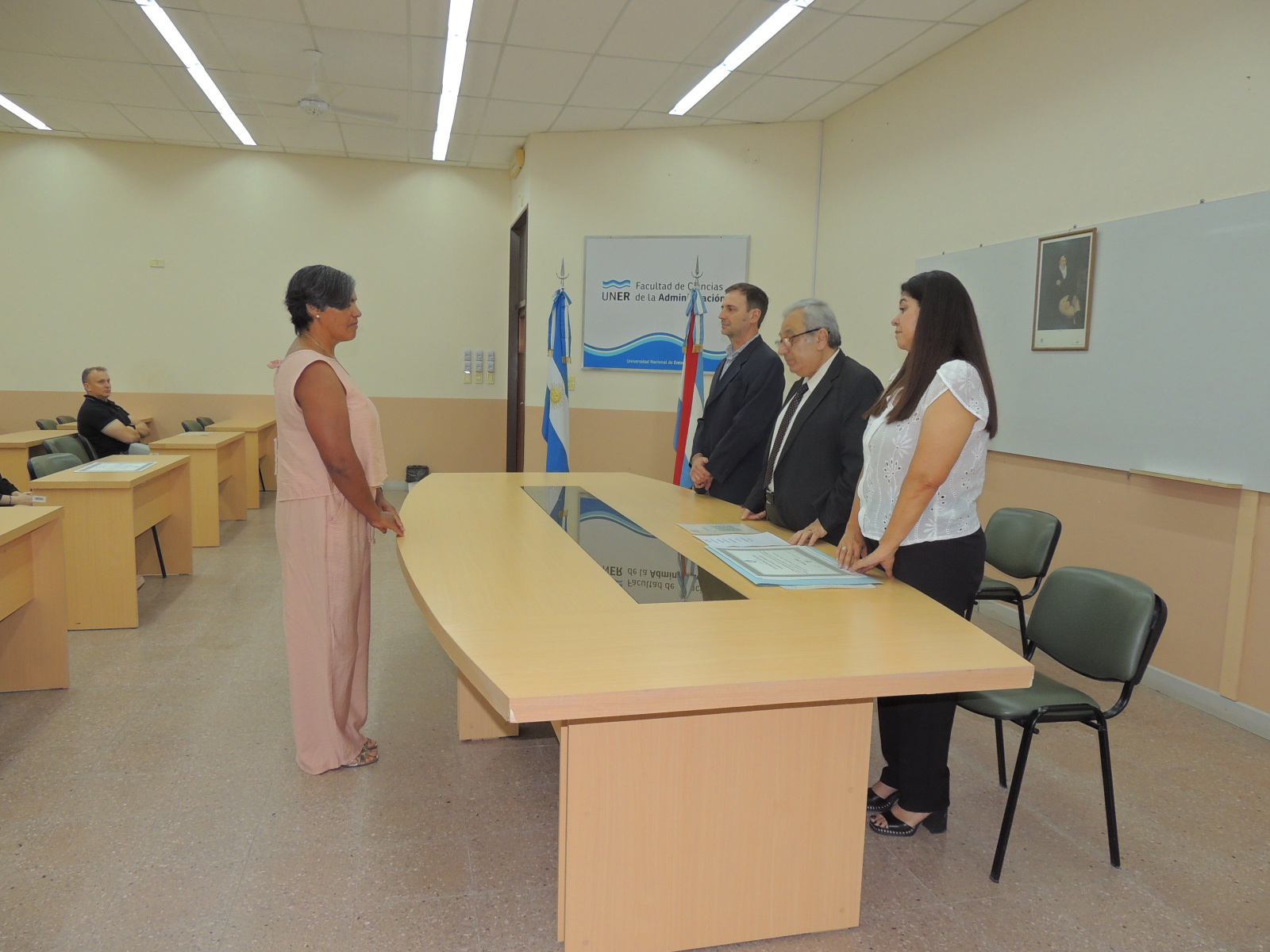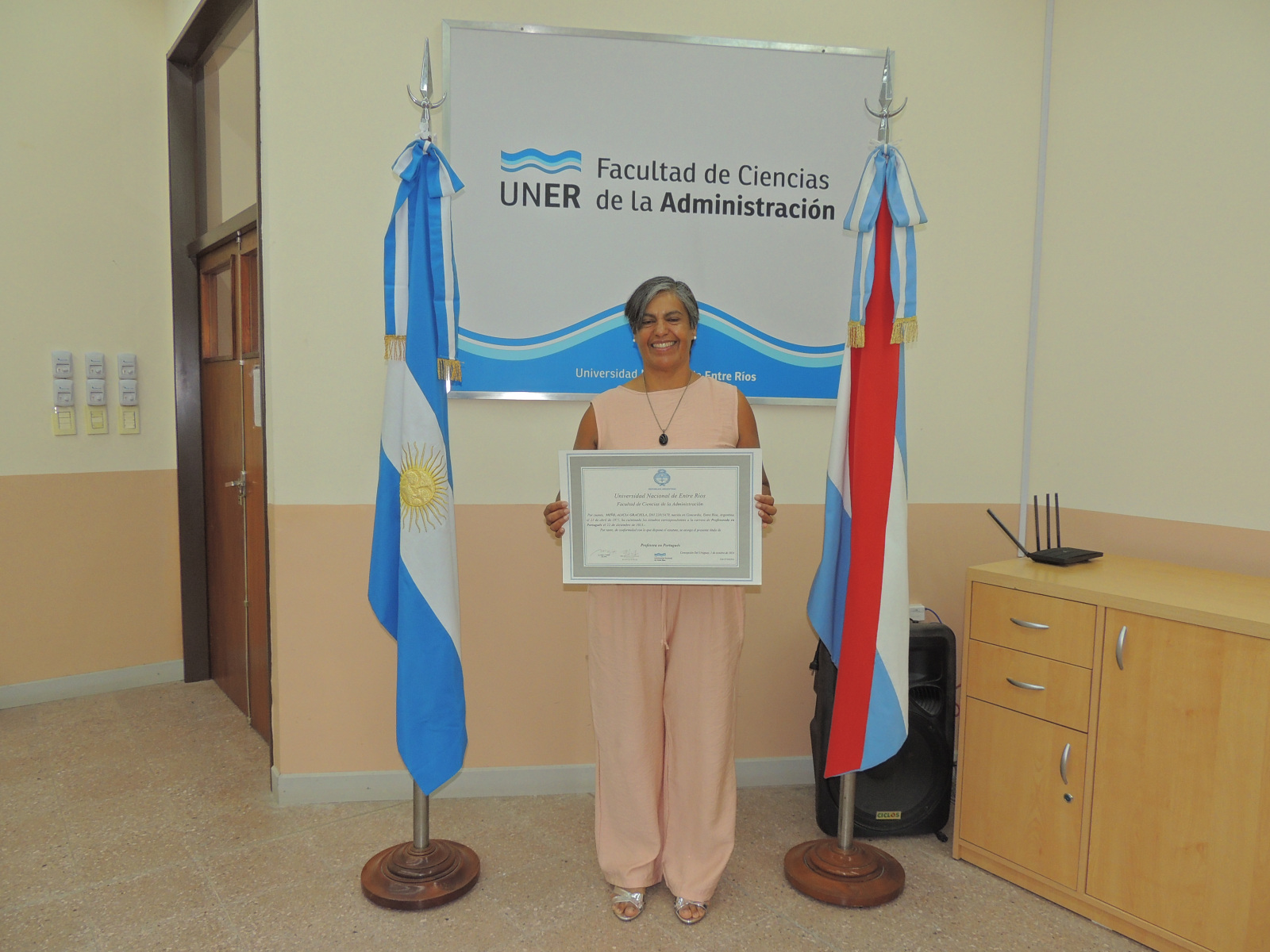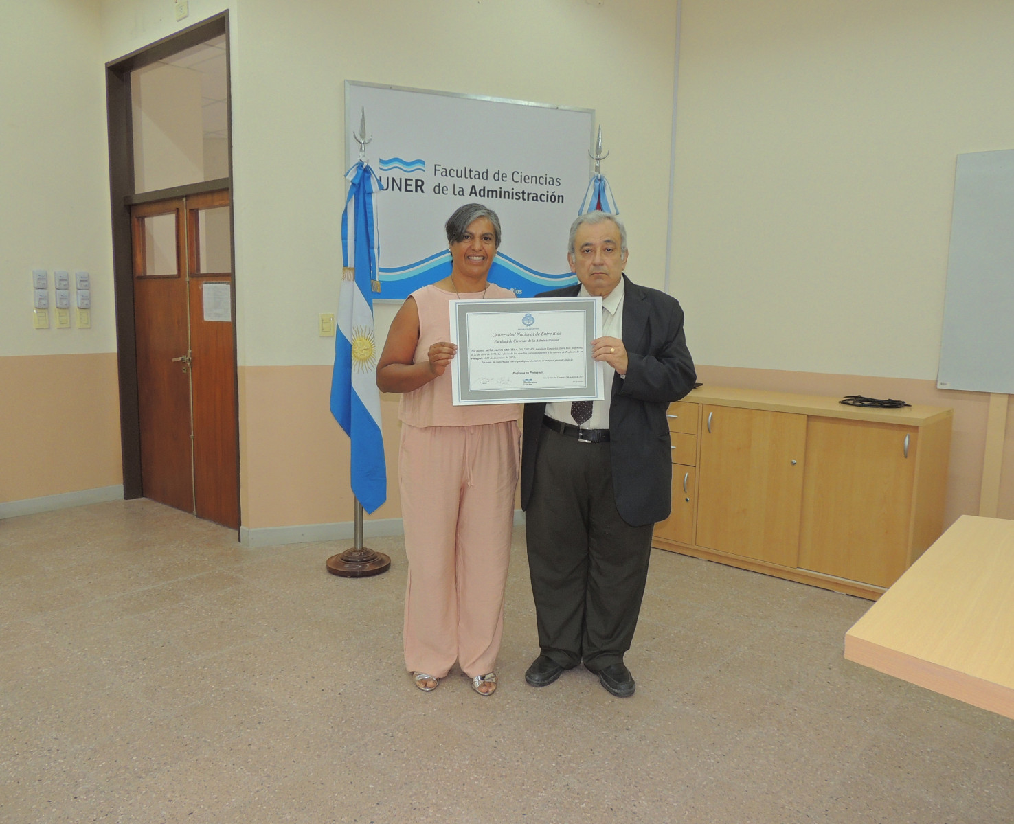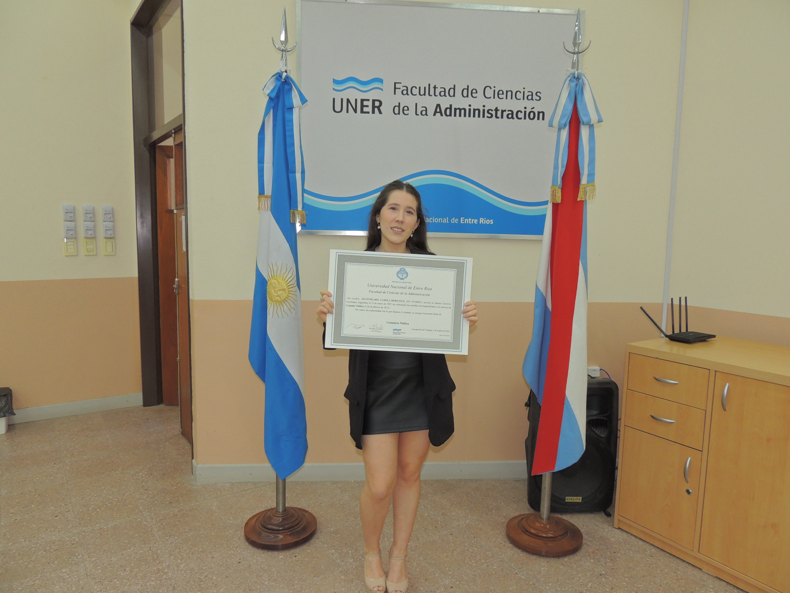 Se realizó la entrega de diplomas a graduados de las carreras de la Facultad de Ciencias de la Administración. Presidió el acto el decano, Cr. Raúl A. Mangia, quien entregó los títulos a los flamantes profesionales. Lo acompañaron en la ceremonia, el Secretario Académico, Lic. Gustavo Leonardi, y la Tec. María Teresa Benítez a cargo de la Dirección Académica.